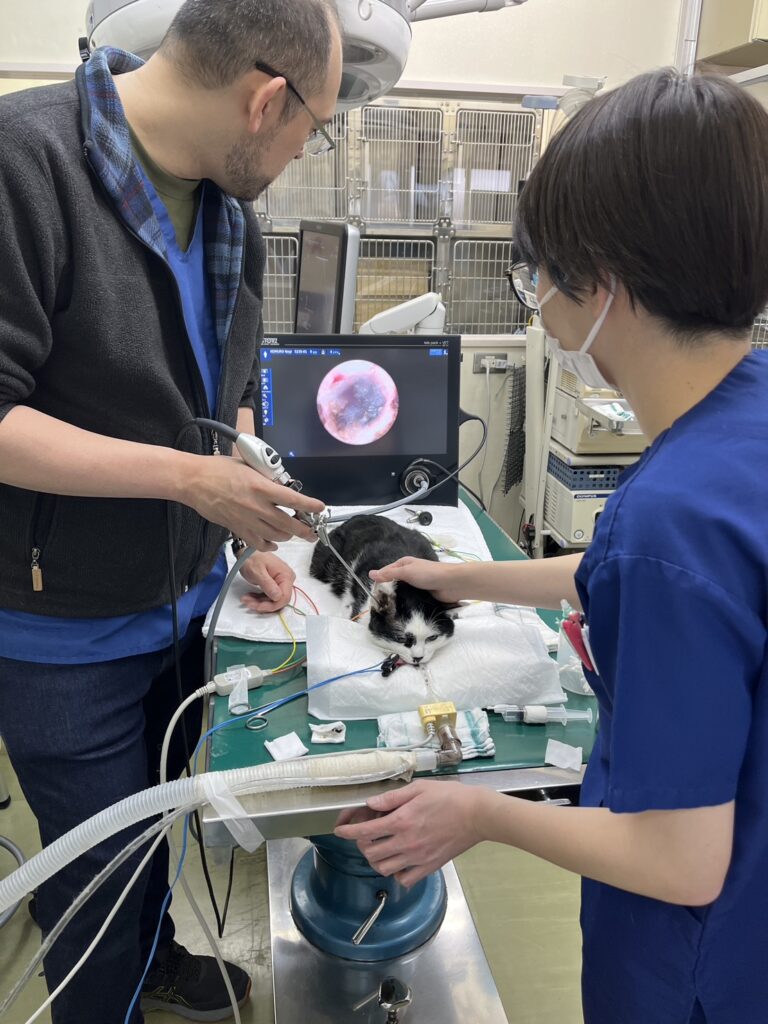 今回の子はミミダニの治療をしていましたがなかなか治らず、オトスコープで見てみるとすでに中耳炎になっていました。